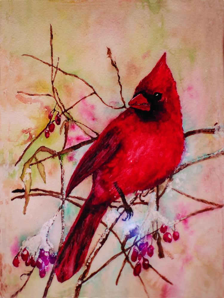 Collection Includes Prints on Artist Grade Watercolor Paper and Gallery Wrap Giclée on Canvas with Varnish Coating. Out of this collection only 1 currently available - Cardinal in the Snow on canvas. To order any of the others, call or text the studio at 713.825.5276